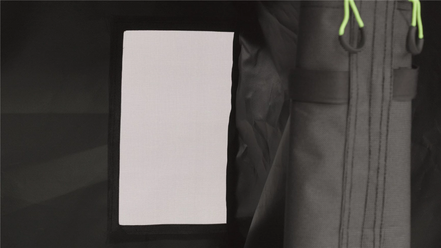 - Two-shelf cupboard with zipped door and mesh ventilation