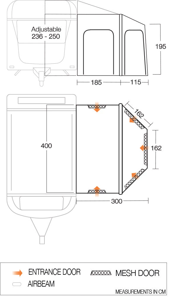 - Vango Draught Seal System – Creates a tight seal between the awning and your caravan, ensuring no draughts come into your awning. This eliminates the need for any poles in your awning, which may have potentially damaged your caravan