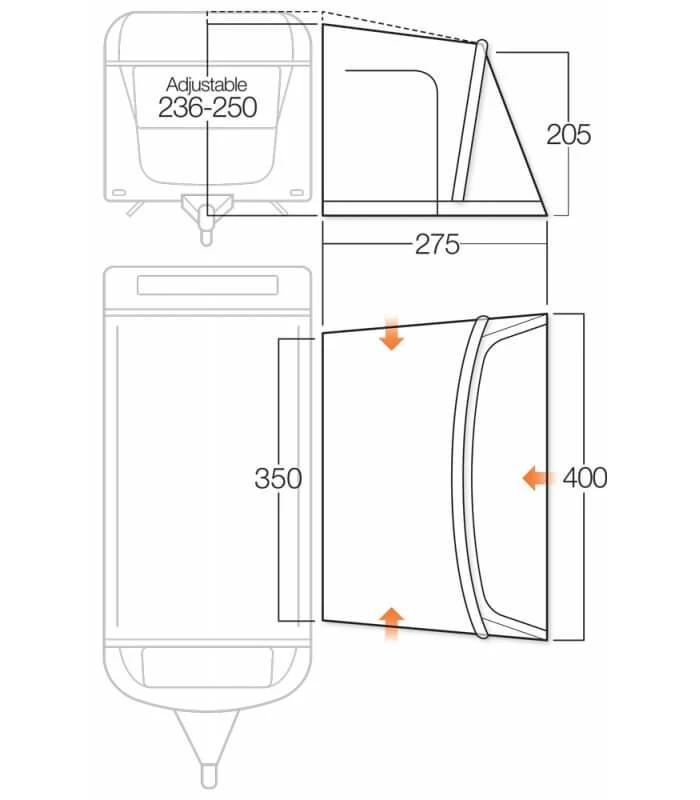 - Weather shield skirt – Positioned around the base of the awning to reduce draughts and easy to clean