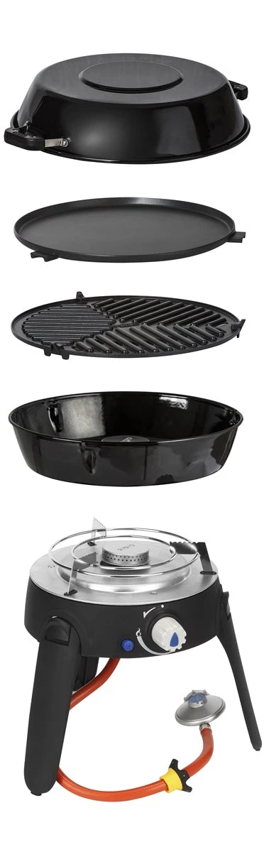 Discover the Safari Chef 2 range; widely regarded as the UK’s number one camping and caravanning necessity. This lightweight barbecue packs a punch; whether camping, motor homing or caravanning, all your outdoor cooking needs are covered. Offering multiple interchangeable cooking surfaces, this 28cm barbecue gives you unlimited cooking freedom. Whatever you’re exploring, do it with the safari chef 2.