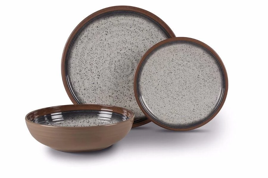 The Farmhouse set, from our Artisan collection of melamine tableware, combines traditional earthen colours with a speckled design. This 12-piece set, made of 100% melamine, is extremely durable, lightweight and dishwasher safe.