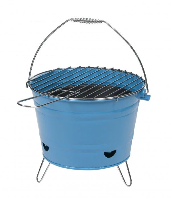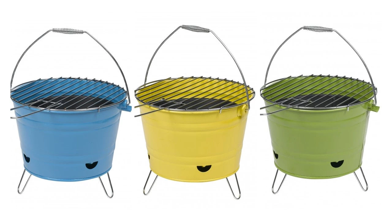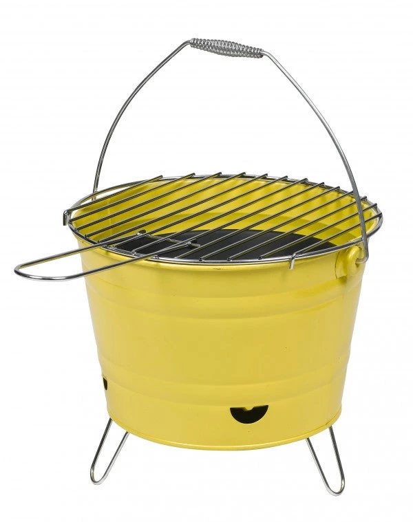 Grilling is a favorite summer pastime. And you don’t need a garden or a balcony for a BBQ evening when you have a portable charcoal grill. The colorful bucket grill “Arlington” is perfect for on-the-go BBQ enthusiasts – it is handy and simple to use. With its bright finish in blue, yellow or green, the grill is an absolute eye-catcher. You can take the “Arlington” anywhere thanks to its light weight and convenient handle. Carry the charcoal you will need for your BBQ easily in the bucket grill. Unlike a normal bucket, the bucket grill has holes near the bottom. This facilitates proper air circulation necessary for the fuel to burn well. Crisp BBQ is a sure thing with these ingenious features. Since the fuel burns in an enclosed space inside the bucket grill, the “Arlington” can often be used at locations where grilling with normal grills – due to fire hazards – is not prohibited. All this makes the bucket grill perfect for camping, picnics or a daytrip to the lake.
