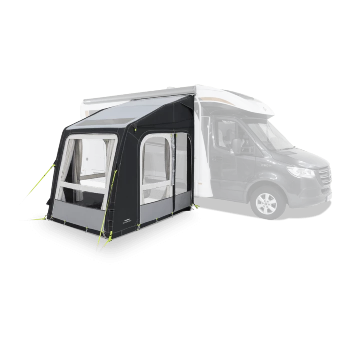 The Rally AIR Pro is quite simply the bestselling inflatable awning in the world. The latest model brings even more features and ensures the Rally AIR Pro remains market leading. Interchangeable zip-out side panels allow the fitting of an annexe or conservatory and the reversal of the side doors – from the back of the awning, to the front, patented Multi-Height System, allowing this awning to fit caravans and motorhomes 235 to 265cm