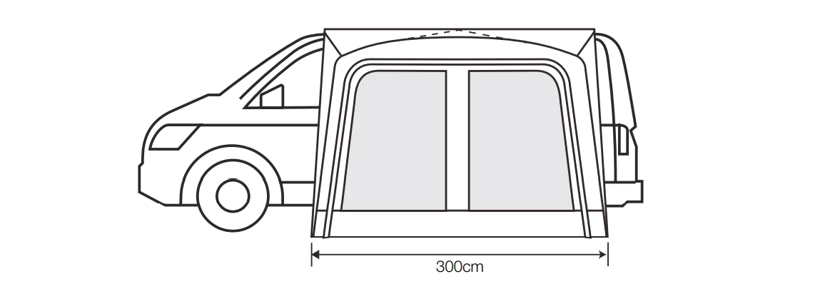 - Footprint 300 x 250cm (+90cm cowl depth)