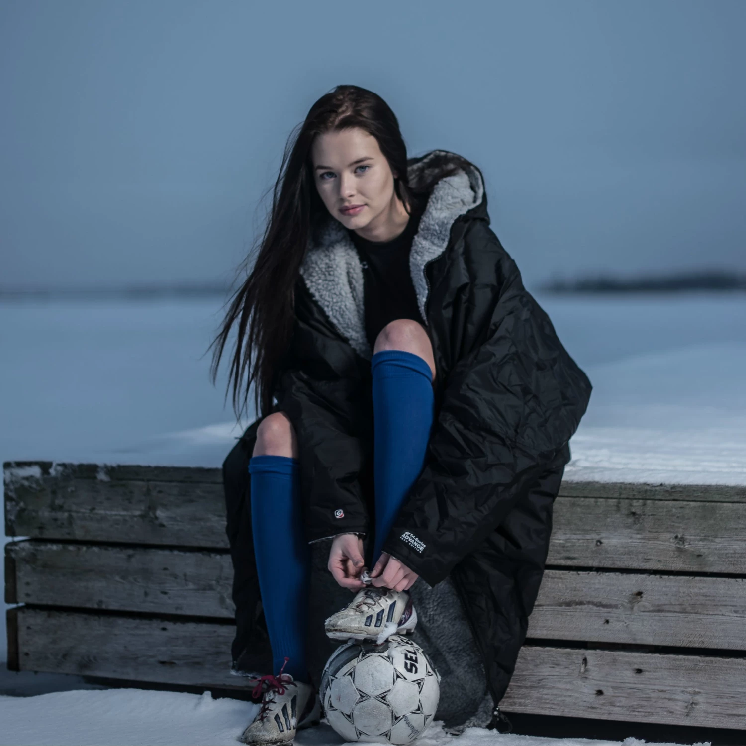Get dry, cover up and stay warm with dryrobe®. If you find yourself hanging around at sporting events, waiting to participate or watching your kids, a dryrobe® Advance Long Sleeve will keep you warm in any climate.