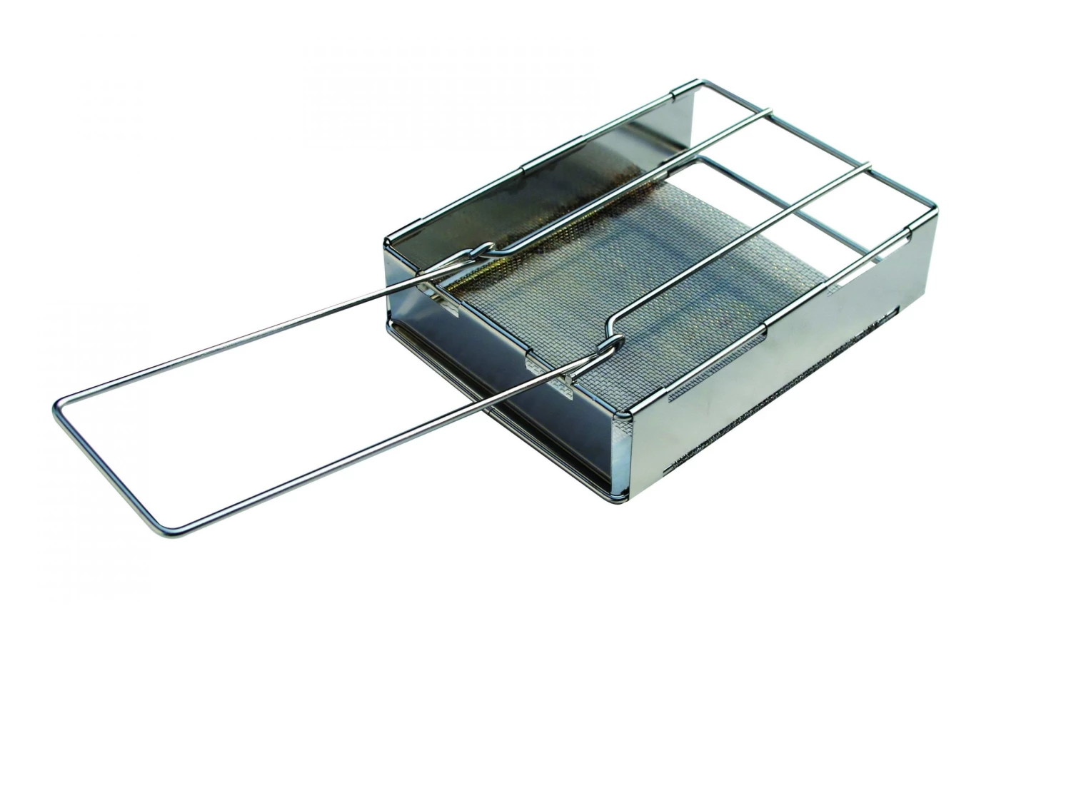 Kampa Crust Stainless Steel Toaster is Single slice stove top toaster. The Kampa Crust sits on the hob ring of any gas burner caravan or Camping Stove and grills toast to perfection.Made from stainless steel it won’t corrode with time or heat. It has a mesh grill to distribute the heat so it toasts quickly and evenly.