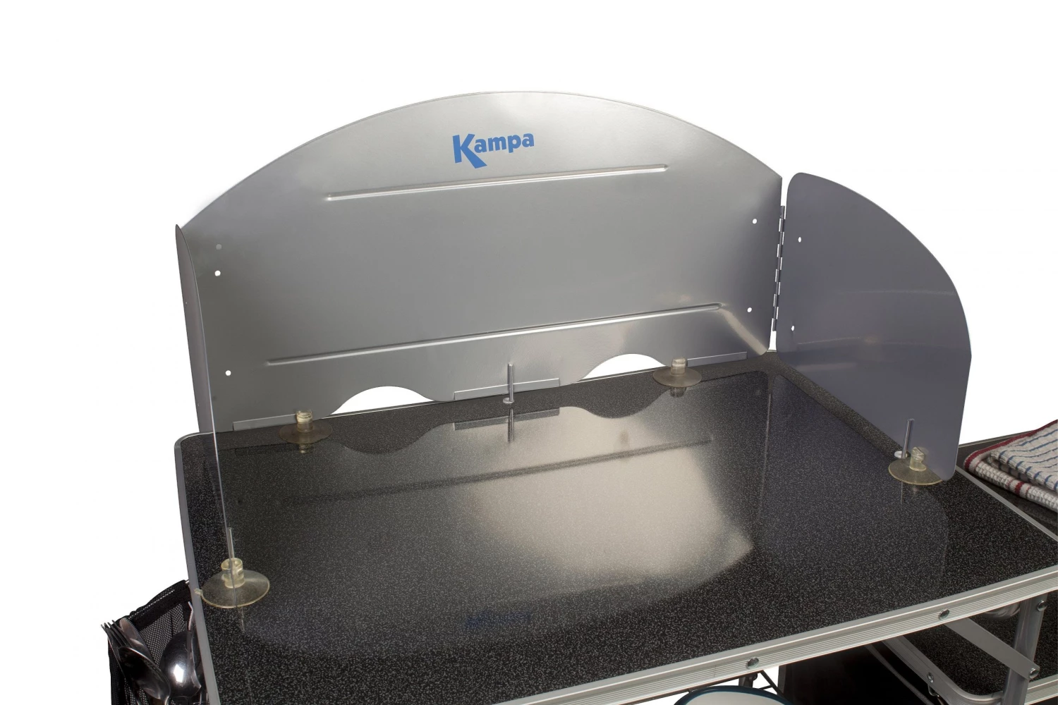 Kitchen windshield to fit to the Kampa Major, Colonel and Commander camping kitchens. The windshield protects the flame on your stove to reduce cooking times and reduce fuel use. Even if you are only using your kitchen for food preparation without a stove, the windshield can protect food from the wind