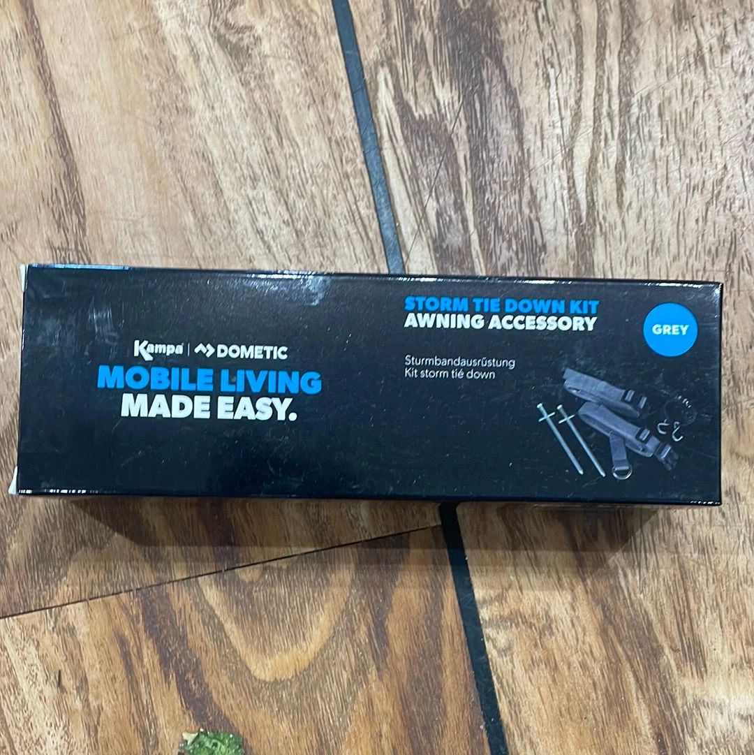 All our caravan awnings, and many of our motorhome awnings, come ready fitted with attachments to accept our Storm Tie Down Kit. If you’re expecting particularly windy weather, these will assist the guy lines already fitted to the awning. Supplied in pairs complete with large pegs.