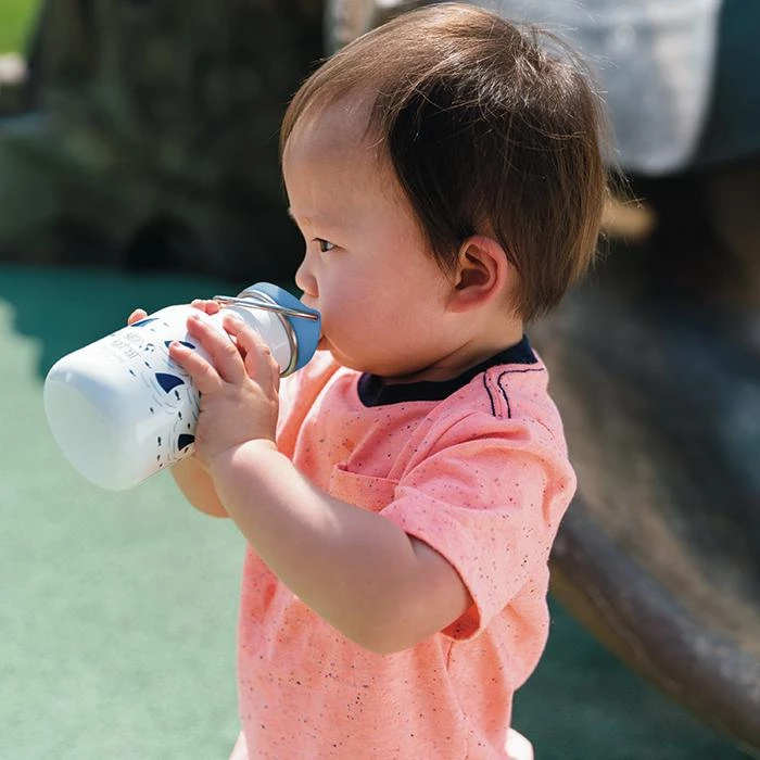 Klean Kanteen stainless steel Classic Sippy kid bottle is designed with kids in mind. Spill proof sippy cap with dust cover and swing away metal loop so it can be easily attached to stroller or bag while swinging out of the way for drinking. Bright cap colors and graphics keep hydration fun. Our chip-resistant Klean Coat™ finish is four times more durable and safe for people and planet. Compatible with all Klean Kanteen Classic Caps for easy transition as kids grow up providing a lifetime of use, as long as they don’t get lost!