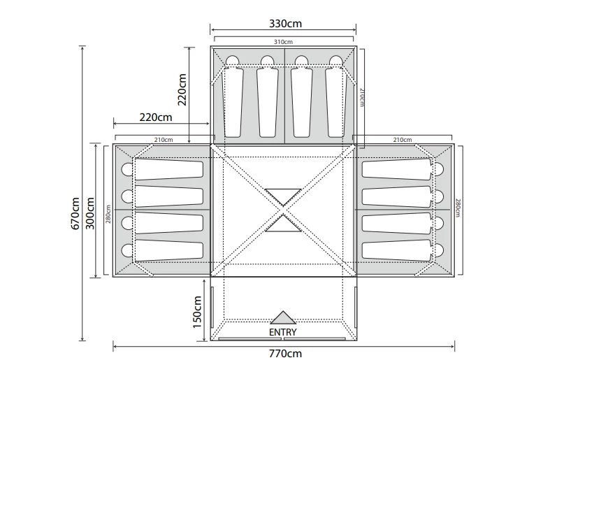 - TOTAL WEIGHT: 36.97kg (Tent only) approx.