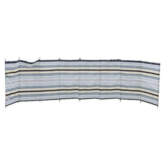 Blue Diamond’s windbreaks are fast becoming a caravanning essential; the contemporary ‘9-Poled Sand/Grey Striped Windbreak’ is a contemporary windbreak produced from a heavy-duty lock-stitch polypropylene, designed to provide additional privacy and exceptionally effective deflection of the wind around your awning, tent or simply you. The windbreak canvas is rot-proof and has a 2-year warranty against any manufacturing faults! This accessory incorporates nine soft-wood poles, with a metal spike on one end to easily and securely penetrate ground, as well as a metal ferule on the other to prevent damage to the pole.The accessory measures 24 foot long and approximately 4ft tall; it comes complete with everything you need to pitch the windbreak, including an awning channel to attach to the caravan, windbreak clips, steel tips and steel caps. The windbreak comes complete in a sand / grey ‘striped’ colourway for a modern finish
