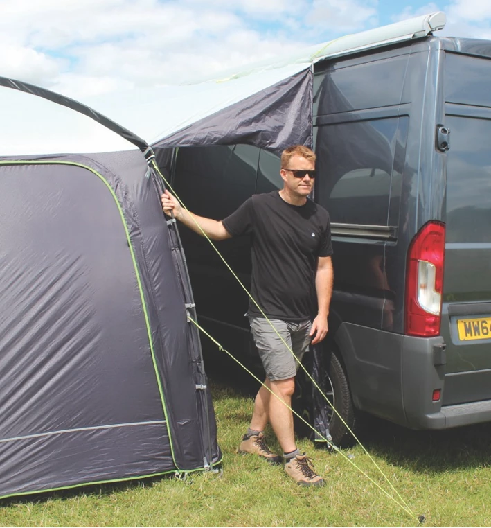 Outdoor Revolution’s “Movelite Cayman XL” is a fantastic short-break motorhome awning, designed specifically to fit taller vehicles from 240cm to 290cm to the awning channel. Perfect for couples or individuals looking for extra storage/sleeping space; the UK’s best-loved pole-and-sleeve drive-away enjoys a cosmetic makeover for 2017!
