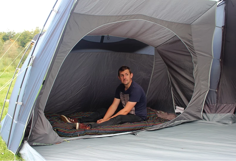 The fabric is exceptionally water-resistant and water will simply bead onto the surface and roll-off. Also, the light-coloured roof material reflects heat to maintain a comfortable temperature inside the awning. The product comes complete with a water-repellent Sewn-In Groundsheet for added protection against the elements. The integral annexe contains a Two-Berth Inner-Tent to provide additional storage/sleeping space; this is crafted from a breathable Micro-Polyester to create a more relaxing environment and help improve air-flow.