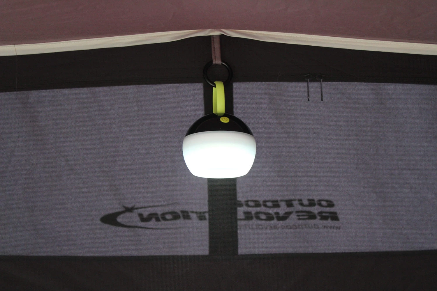 Outdoor Revolution’s ‘Lumi-Lite’ is an excellent chargeable camping lantern, specifically designed to provide up to 8 hours (battery life) of lustrous light in your tent, ensuring it feels that little bit more at home for the outdoor enthusiast. With a variety of brightness settings, to dim or enhance the lighting in your tent/awning to accommodate your needs; this accessory makes for a fully-functional ceiling light, portable lantern and even a ‘night light’ for families! Conveniently, It is chargeable through any power sources with an external USB socket, yet it is completely waterproof! Complete with an ergonomic carry handle; this product really has it all! This optional extra is most effective when used in conjunction with our ‘12V USB Charging & Power Hub’ and ‘Up/Down Lighter’ reflective shade system; it is even compatible with our entire 2018 range of air-tents, air-awnings and air drive aways.