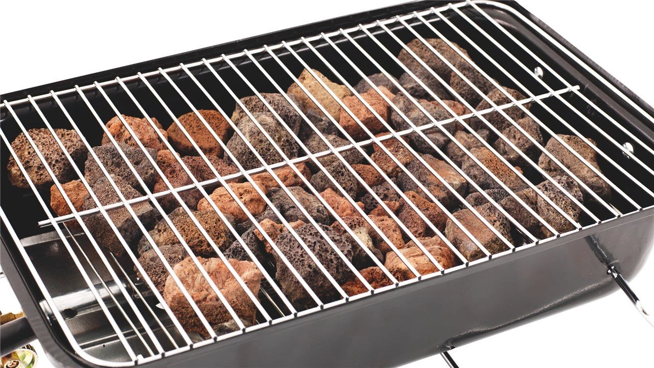- With lava rocks to hold and reflect heat and give an authentic grill flavor