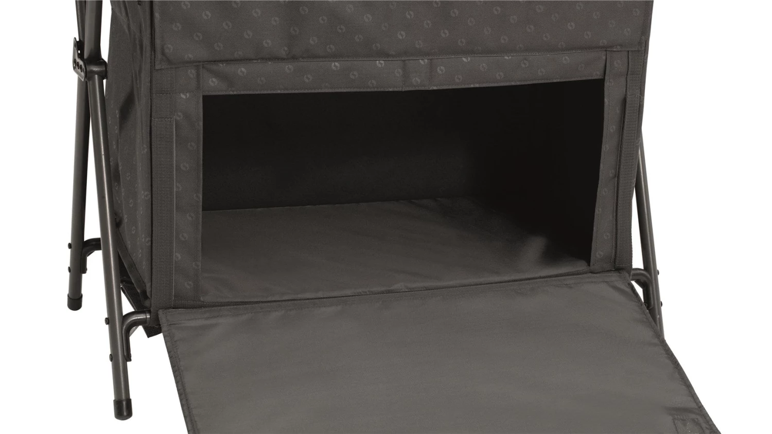 The versatile, stable storage units of the Outwell Cupboards and Wardrobes with magnet doors are quick and easy to set up and keep clothes and equipment clean and tidy. The doors are formed with easily assembled fibreglass frames and secured shut with sewn-in magnets for noise-free opening and closing.