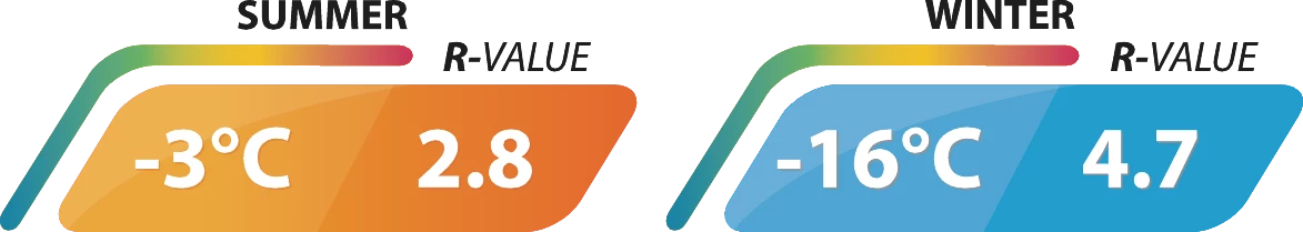 Ingenious heat regulation is achieved through offset air core sculpting which enables greater or less body heat retention depending on which mat side is slept on – a real performance boost when needed for optimum year round comfort. When the mat is turned with the air cores next to the body excessive heat can escape making it easier to cool down during warm summer nights. When the mat is turned the opposite way it gives the user the optimal insulation as the body heat is reflected by the foam. This option is used in colder nights. This air core design also offers campers a softer sleep sensation as well as better ease of packing, lower weight and neater packed size.