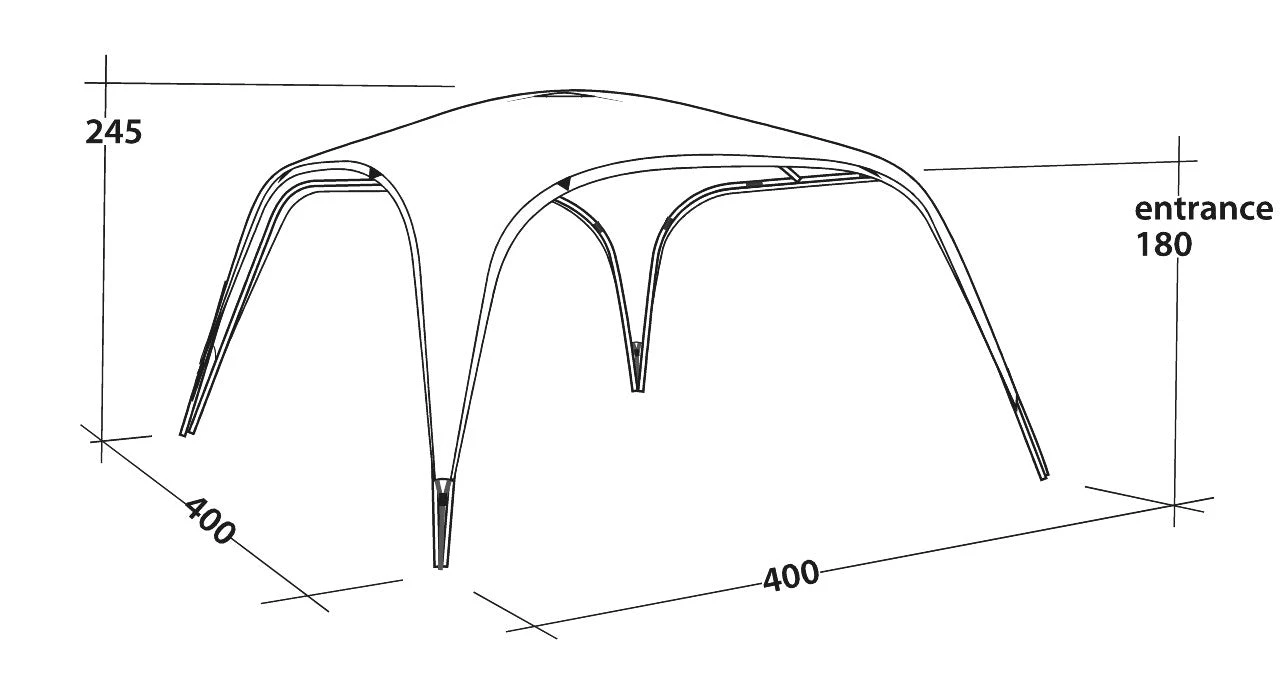 The Outwell Event Lounge L 4 x 4m offers versatile freestanding outdoor shelter with a wide range of uses, the Outwell Event Lounge M is a sturdy, stable design with easy access and standing headroom. Apex ventilation and a central lantern hanging point plus two mesh pockets extend its practical flexibility. Its silver-coated, PU-proofed polyester fabric has a hydrostatic head of 1500mm. To make a larger shelter, a gutter can connect compatible designs.