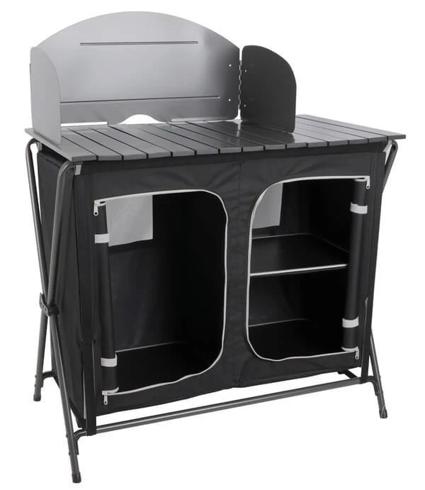 With enclosed storage for utensils and food items, and a windshield for the roll-top surface, you’ll wonder how you ever managed without a camping kitchen.