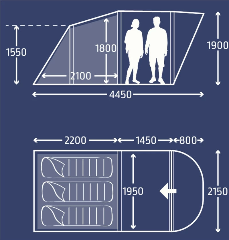- Darkened Bedrooms – Inner tents use dark materials to block out early morning sunlight for a good night’s sleep.