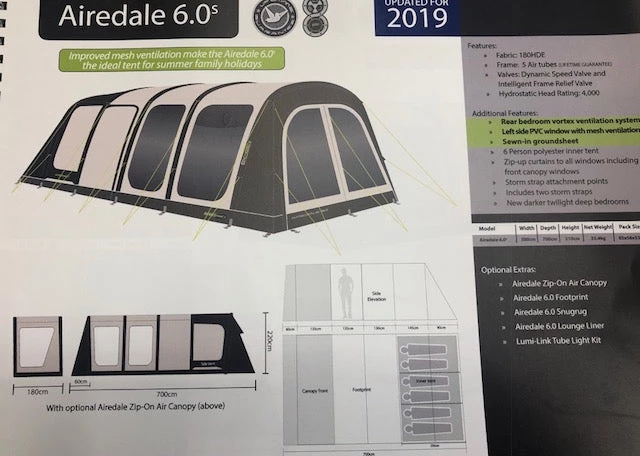New for 2019 following the success for the 2018 Outdoor revolution Airedale 6, the have brought out the new Airedale 6.0s
