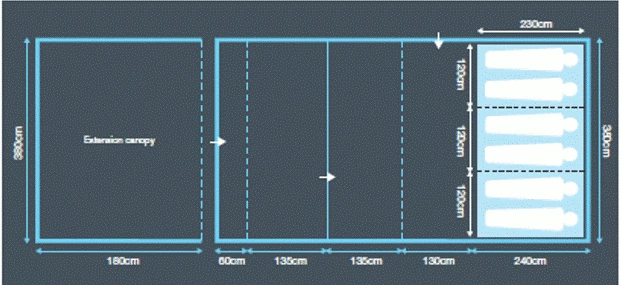 - Recommended Use Perfect for family campers wanting a mass of living space, sleeping space and a three-zone tent.