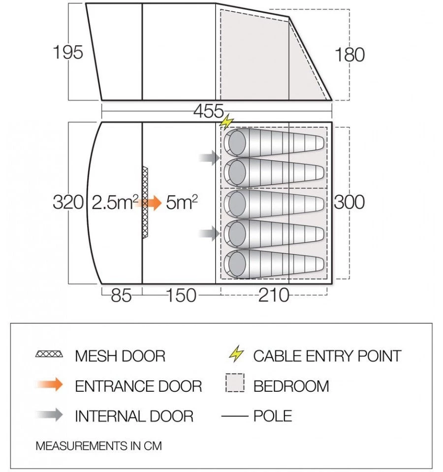 - Part Mesh Bedroom Door – Zipped mesh window allowing additional ventilation, while keeping bugs out