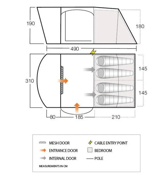- Vango AirZone – High and low level ventilation panels combine to create a comfortable flow of air through the tent. Air circulation is essential for reducing condensation