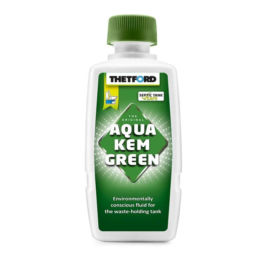 Aqua Kem Green fluid for the waste holding tank Aqua Kem Green stimulates biological activity in your waste holding tank. Micro-organisms biologically break down the toilet waste in the tank. With average use, Aqua Kem Green acts for a maximum of three to four days. It remains fluid up to a temperature of -20ºC and is still effective after thawing. This product is particularly suitable when emptying the waste holding tank into septic tanks on camp sites.