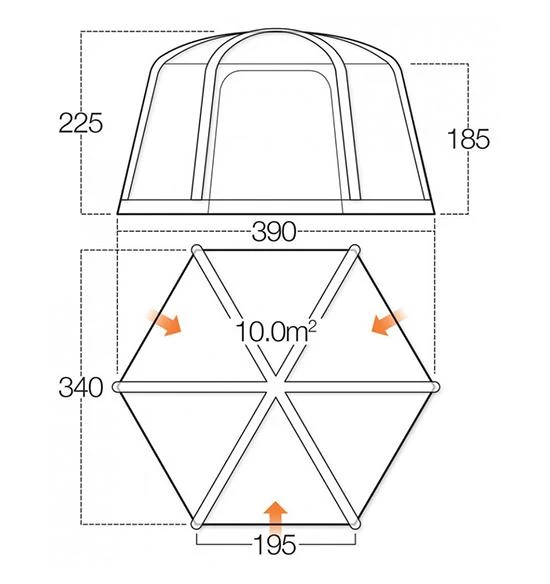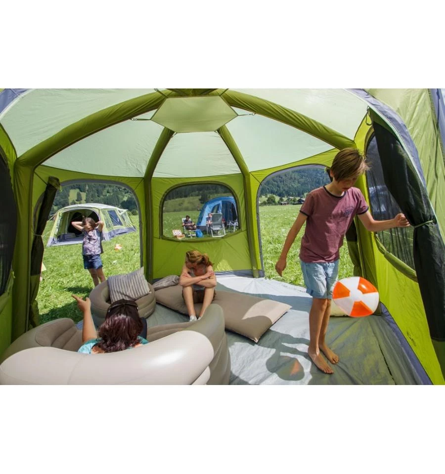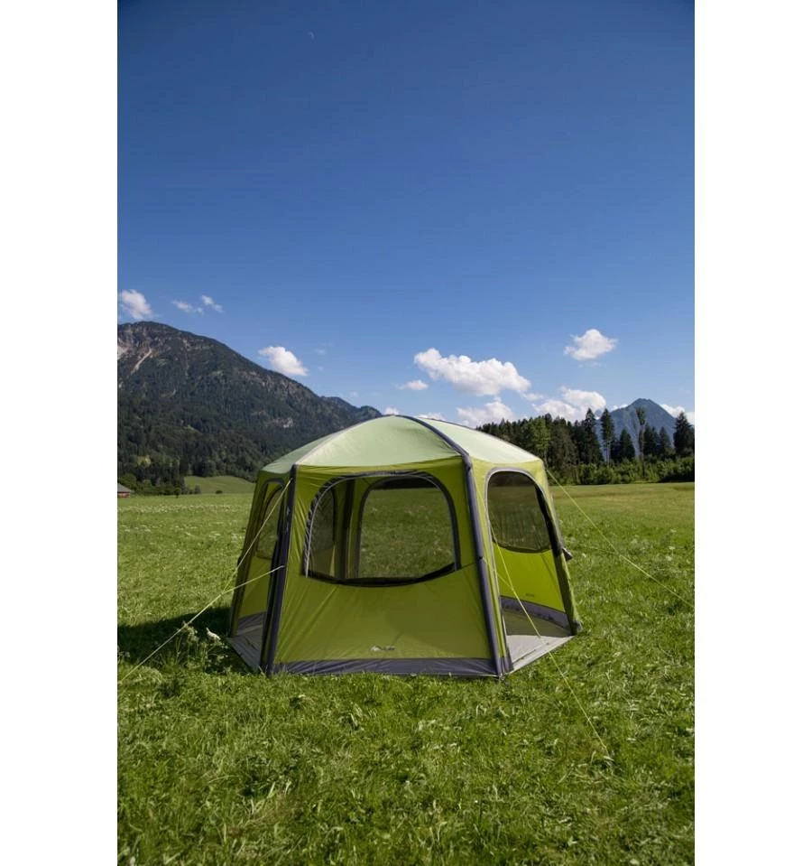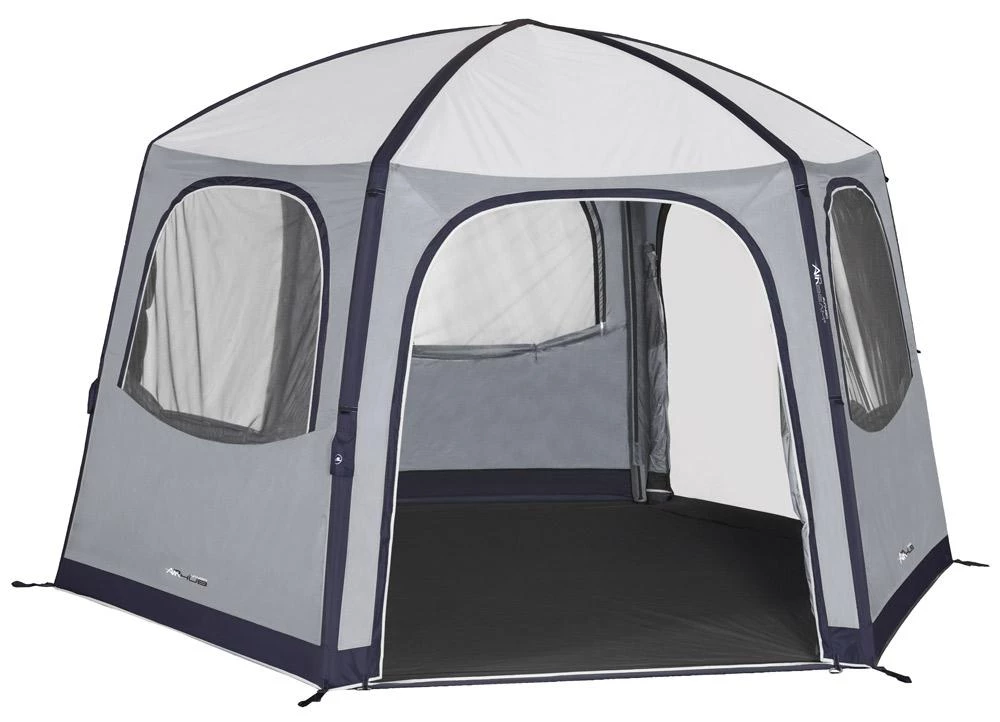 Expertly designed, the New AirHub Hex gazebo tent offers additional communal space for any occasion, be that on the campsite or in the garden. Available in both Herbal green and Smoke grey, this fantastic event shelter will meet the needs of campers, motor home users or caravan owners alike, who are looking for additional living space. With a single inflation point, yet three valves, AirHub Hex is fast and easy to inflate and deflate. All 6 sides come built into the shelter, including 3 large full side doors and 6 mesh windows, AirHub Hex is ready for any occasion.