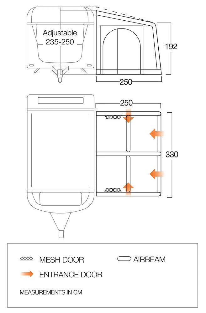 - Optional Mesh Door Pack Available – Mesh doors to increase the flow of air within your awning while keeping bugs out