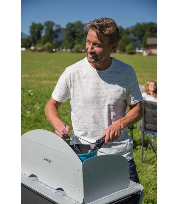 The kitchen windshield is suited to a wide range of camping kitchens, including the Bistro DLX and Gastro models