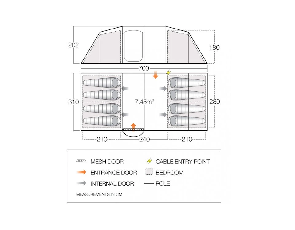 - Cable Entry with Tidies – Neatly feed electrical cables into your tent allowing you to easily keep your camping appliances powered
