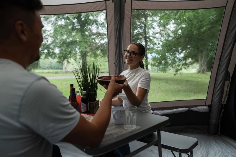 The Stargrove II Air TC 600XL is perfect for long summer breaks with added luxury. This 6-man inflatable tent is designed with our AirBeam® technology, ensuring quick inflation and a sturdy and reliable structure, while the large living room and pre-attached front extension provide room for all the family. Furthermore, the Queen size bedrooms with Nightfall inners reduces early morning light, allowing for a peaceful night’s rest. Other features include cable entry points, a fully sewn-in groundsheet and Diamond Clear windows for added comfort. The Stargrove benefits from our Sentinel Experience TC Fabric which combines the leading properties of both cotton and polyester to create a rich polycotton fabric. Sentinel Experience TC is breathable and climate controlling helping to keep the tent cool when the weather is hot, and warmer in cold conditions.