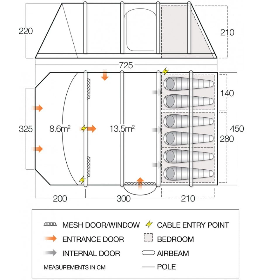 - Vango AirBeam® – Quick to pitch and creates a strong and rigid structure