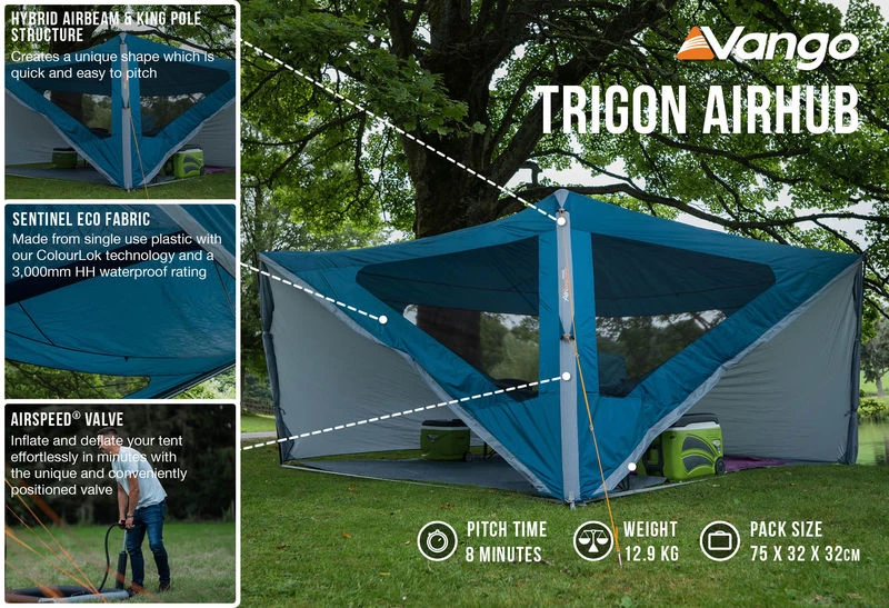 Vango Trigon AirHub, The versatile shelter for cooking and socialising under.