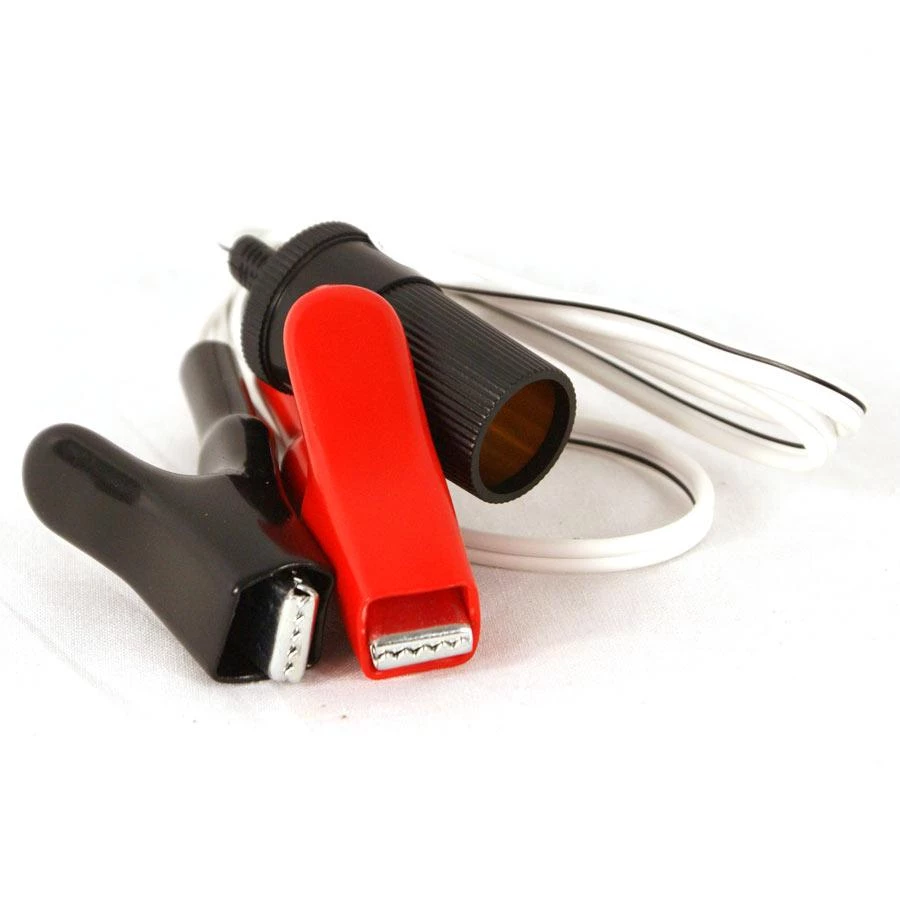 Cigar socket to 2 fully insulated crocodile clips with 1 metre of cable. Ideal for connection directly to the battery.